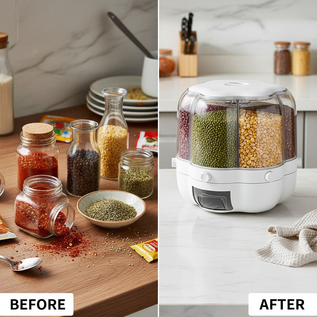Organizza la tua cucina con SpinBox™: contenitore rotante 360°, chiusura ermetica e design moderno.